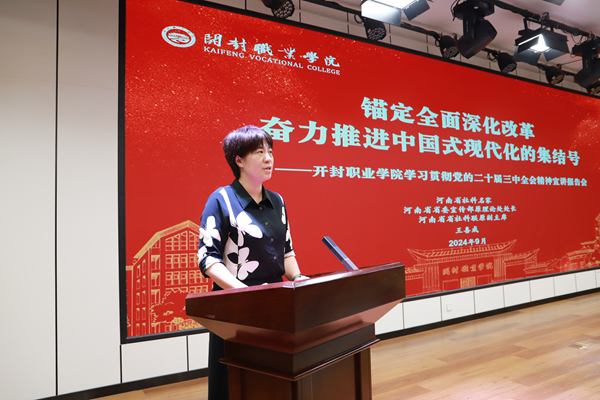 常务副校长刘珊珊作总结讲话。她强调,全体教职工要以此次报告为契机,从坚定拥护“两个确立”、坚决做到“两个维护”的高度,认真学习贯彻党的二十届三中全会和习近平总书记重要讲话精神,切实把思想和行动统一到以习近平同志为核心的党中央决策部署上来,守正创新,谋划发展,围绕学校中心工作和发展大局,躬身入局、担当作为,推动全会作出的重大决策部署在学校条条落实、件件落地、事事见效,为推动学校各项事业高质量发展贡献力量。