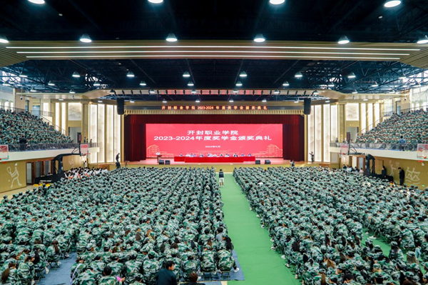 大会在庄严的国歌声中拉开序幕。常务副校长刘珊珊宣读《开封职业学院关于表彰 2023-2024 学年奖学金获得者的决定》。随后,张强武教授,校长徐仲昆、校党委书记储建新等嘉宾和校领导为获奖学生代表颁发奖学金荣誉证书。