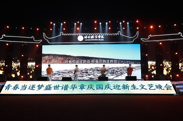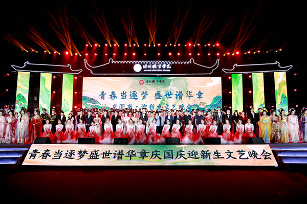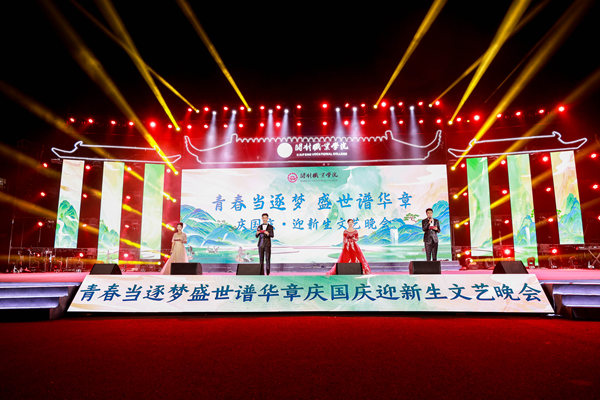 9月26日晚,我校“青春当逐梦 盛世谱华章”2024年“庆国庆·迎新生”文艺晚会在“瓮城”中央精彩上演。社会各界领导和嘉宾,学校董事长郑铁军,校党委书记储建新,校长徐仲昆等校领导,各二级学院院长、各行政职能部门负责人以及2024级全体师生欢聚一堂,共同观看演出。