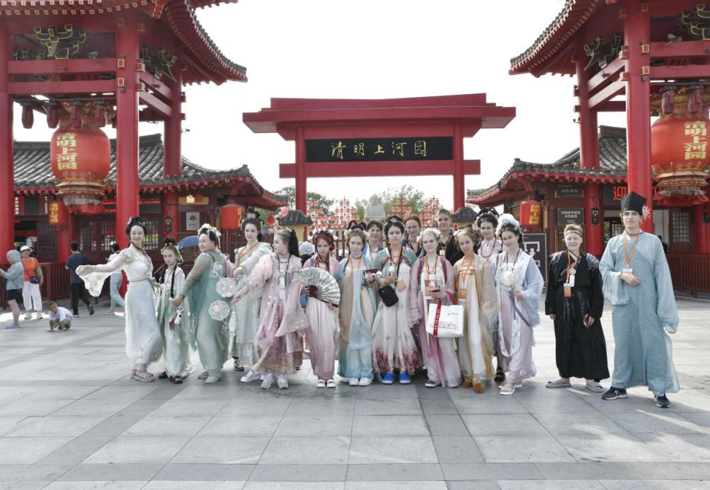 研学期间,俄罗斯师生亲身体验了汴绣、朱仙镇木版年画、北宋官瓷等传统技艺,并参与了茶艺、中文学习、武术、软笔书法、围棋等课程。他们还游览了清明上河园、书店街、鼓楼夜市等景点,体验了北宋的盛世繁华,感受了开封历史文化的魅力。