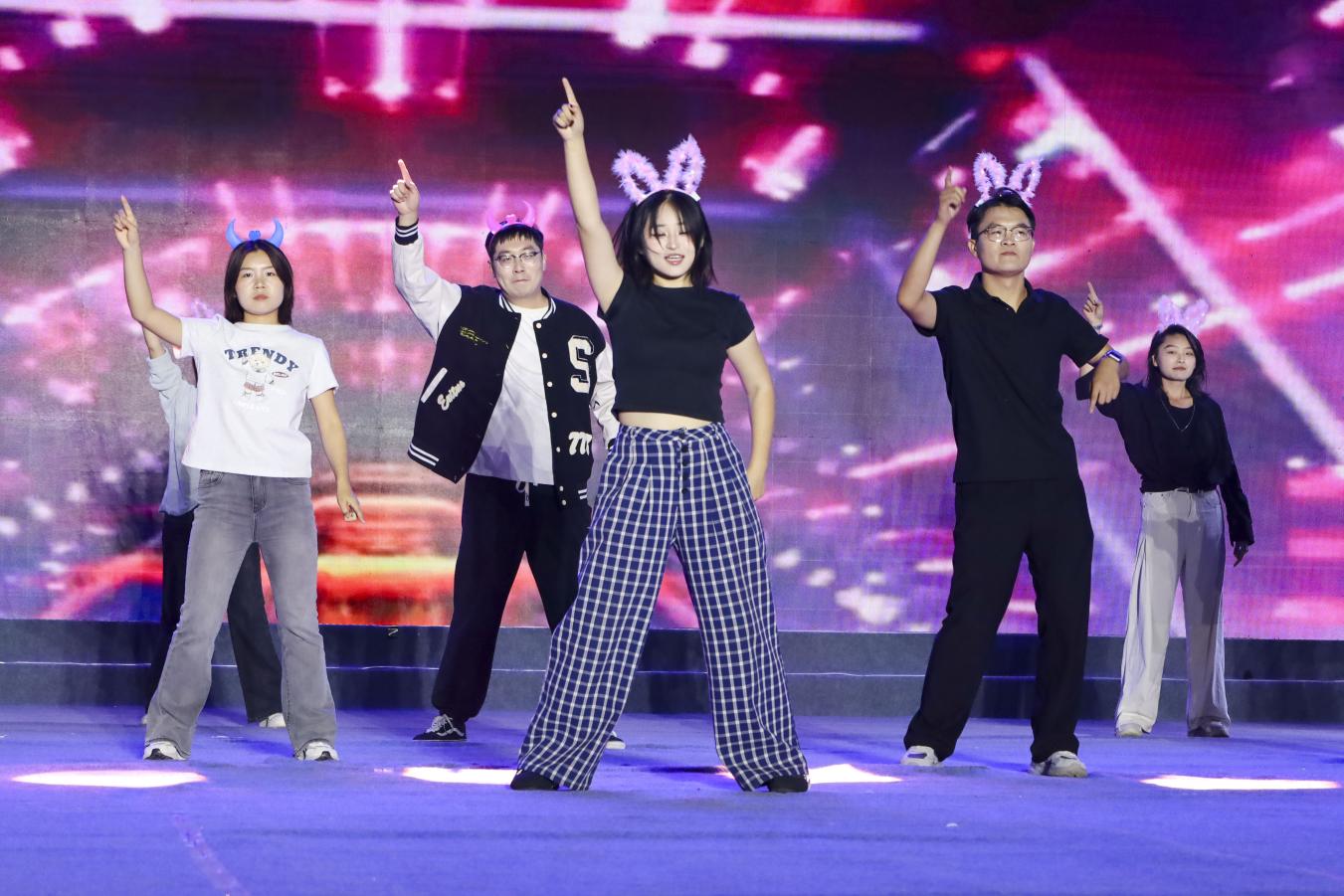 节奏明快的《斗秀场》将专业元素融入时尚走秀,充分展现专业特色与青春自信;武术《精武门》动作刚劲、气势如虹,彰显刚健有为的学子风貌;说唱《夺冠军》以青春语态诠释拼搏精神,凸显“敏行砺能”的校训内涵。互动环节《嗨新生》别出心裁,新生辅导员纷纷登台,通过古筝、二胡、武术乃至非遗喷火等才艺展示,拉近了师生距离。抽奖环节更是将现场气氛推向高潮。