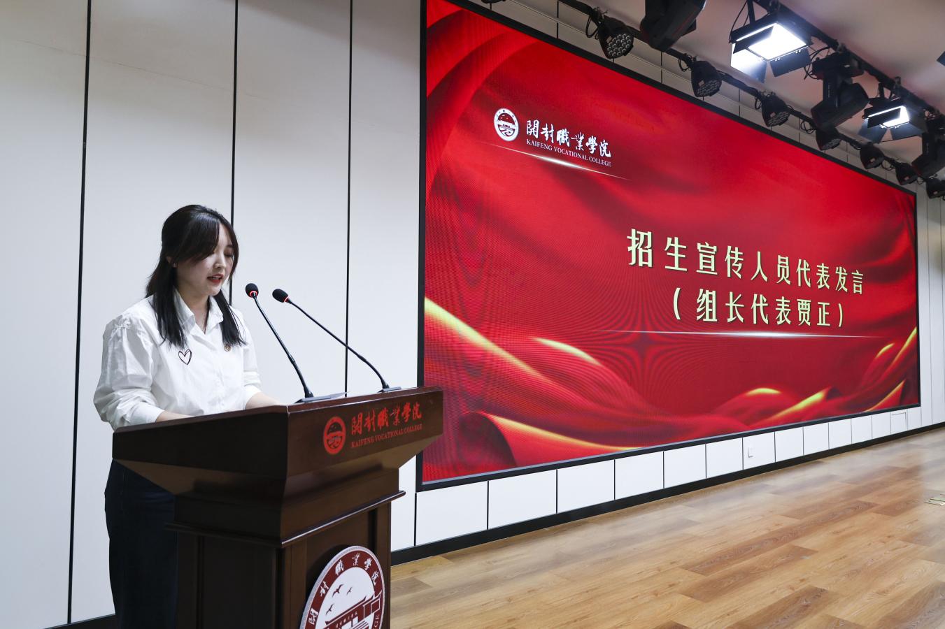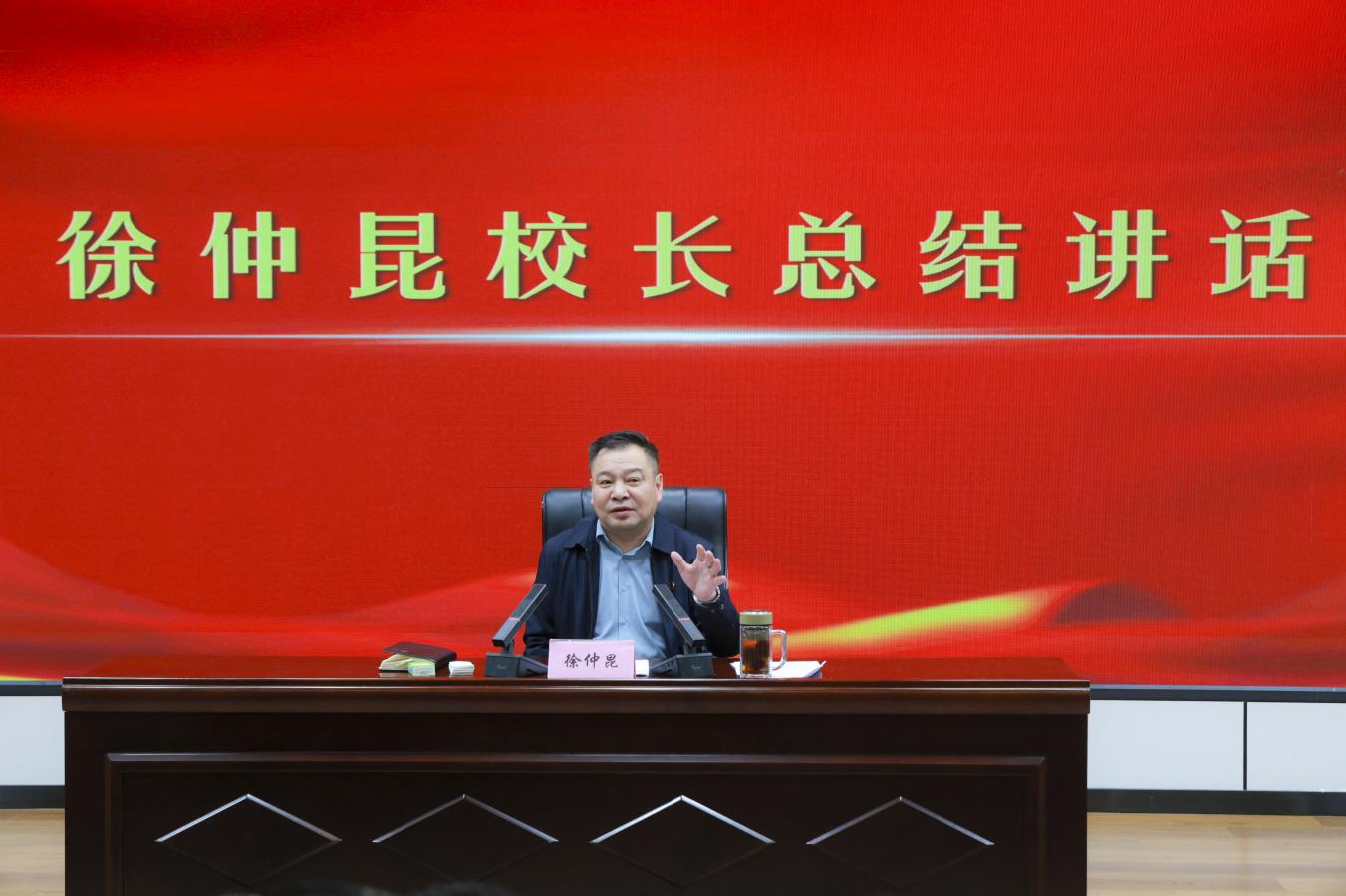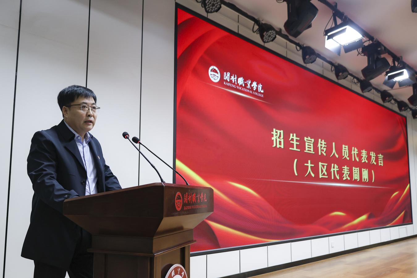 徐仲昆在总结讲话中,首先代表学校向所有为招生工作付出辛勤努力的教职工致以诚挚感谢。他结合自身多年民办高校管理经验,指出开封职业学院的快速发展,离不开每一位开职人的无私奉献。他强调,“全员招生”理念的深层价值在于培育全体教职工与学校发展休戚与共的责任意识和归属感,通过亲身参与增进对学校的认同,共同维护学校声誉。讲话中,他对典型老师的科学工作方法表示肯定,同时也指出个别部门存在的差距,要求深刻反思、迎头赶上,将全员招生的理念落到实处。