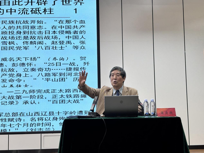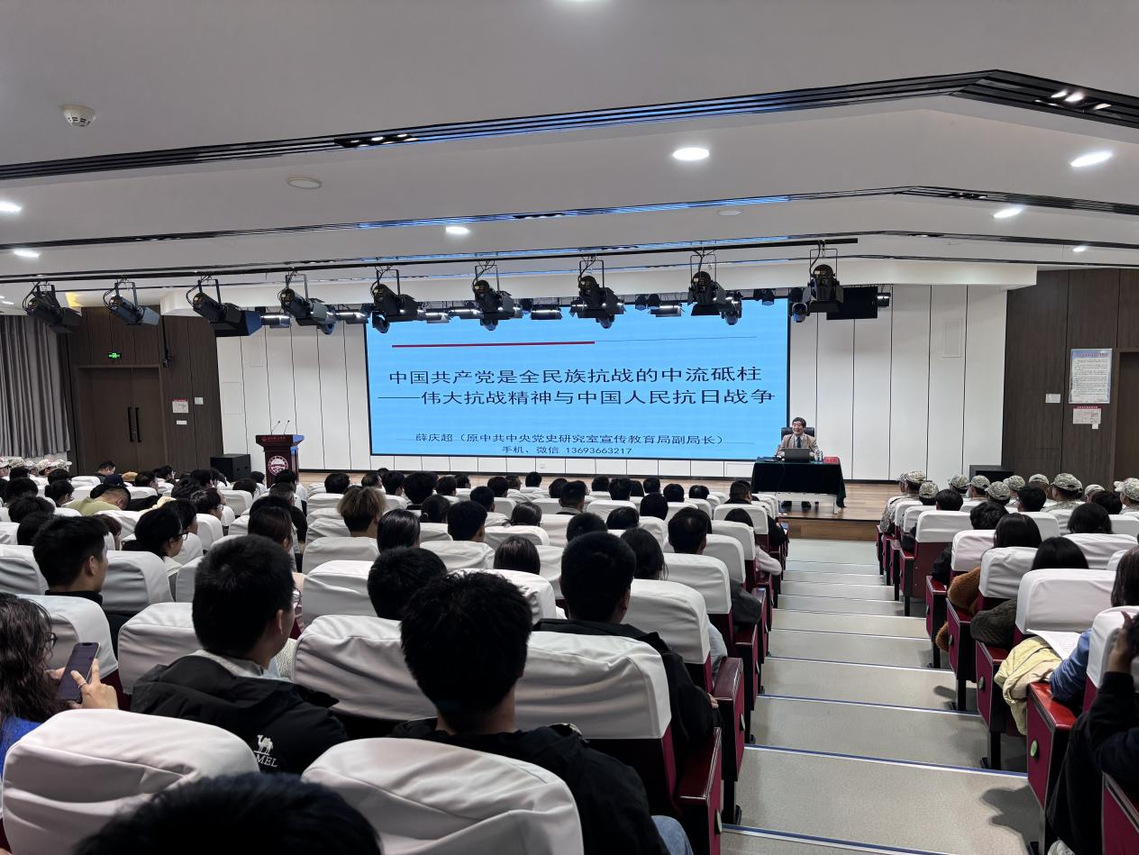 报告会上,薛庆超教授以深厚的党史理论功底和丰富的研究经验为支撑,结合杨靖宇、赵尚志、赵一曼等大量鲜为人知的英雄先烈的感人事迹,用生动形象、饱含情感的语言,围绕“中国共产党领导的东北抗日游击战争是十四年中国人民抗日战争起点,揭开世界反法西斯战争序幕”“‘七七事变’成为中国全民族抗战的开端,由此开辟了世界反法西斯战争的东方主战场,中国共产党是全民族抗战的中流砥柱”“中国人民抗日战争打败了日本侵略者,宣告了日本军国主义的彻底失败,宣告了中国人民抗日战争和世界反法西斯战争的最后胜利”等三个核心问题展开深入讲解,为在场师生带来了一场兼具思想深度、政治高度与情感热度的精神盛宴。