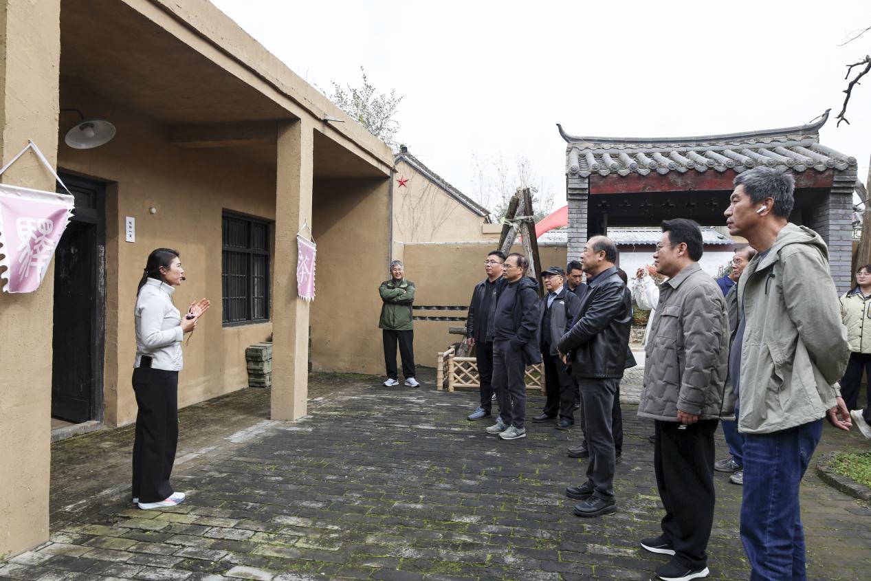 活动当天,老教师们首先来到杞县花胡寨村的中共豫东抗战第一枪纪念馆。在讲解员的引导下,大家认真观看馆内陈列的历史文物、图片资料和场景复原,深入了解1938年中共党员吴芝圃等人在此领导抗日武装打响豫东抗战第一枪的英勇事迹。泛黄的照片、锈迹斑斑的武器、感人至深的故事,让老教师们仿佛回到了烽火连天的抗战岁月,深切体会到革命先辈为民族解放事业不畏牺牲的崇高精神。随后,一行人前往杞县革命历史纪念馆,系统回顾了杞县作为豫东革命老区,从新民主主义革命时期到社会主义建设时期波澜壮阔的革命历程,进一步夯实了对党的光辉历史的认知。在五里河镇桃林岗阻击战纪念馆,老教师们通过影像资料和实物展览,重温了1948年淮海战役中,人民解放军在桃林岗与国民党军展开殊死搏斗的壮烈场景,被战士们“人在阵地在”的钢铁意志深深震撼。最后,大家走进虎背岗刘庄村的淮海战役前线委员会指挥部旧址,驻足于简陋的土屋和斑驳的作战地图前,聆听当年刘伯承、邓小平、陈毅等老一辈革命家在此指挥淮海战役的峥嵘往事,感受“小村落里的大决战”背后的战略智慧与军民同心的磅礴伟力。每到一处,老教师们都认真聆听、不时驻足,有的拿出手机记录珍贵瞬间,有的低声交流感悟,眼中闪烁着激动的泪光。