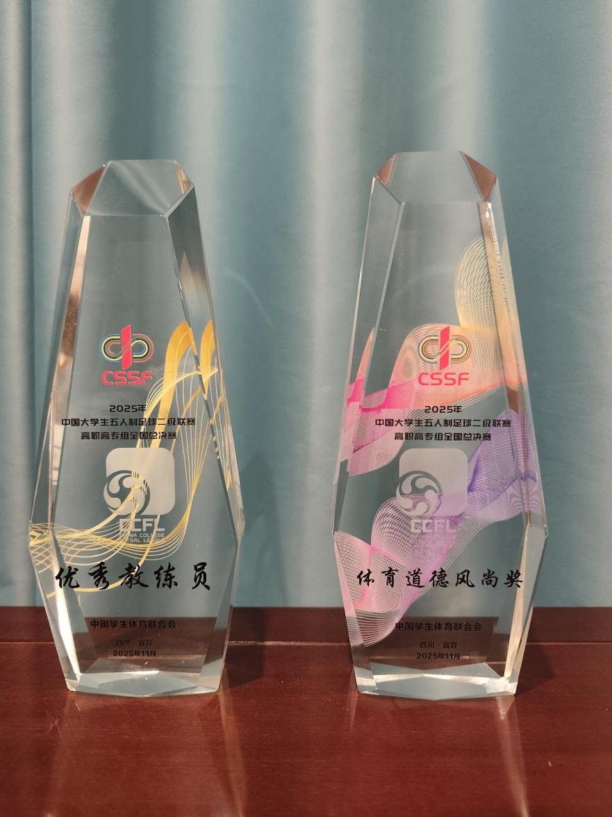 11月20日至28日,由中国学生体育联合会主办的2025年中国大学生五人制足球联赛高职高专组全国总决赛在四川宜宾举办。我校男子足球队作为河南省代表队之一,首次踏上五人制足球全国最高赛场,与来自全国的精英队伍同场竞技。最终凭借顽强拼搏的精神与良好的赛风赛纪,在激烈角逐中荣获全国第八名,并一举收获“体育道德风尚奖”,主教练田雨老师荣获“优秀教练员奖”,实现了运动成绩与精神文明双丰收。
