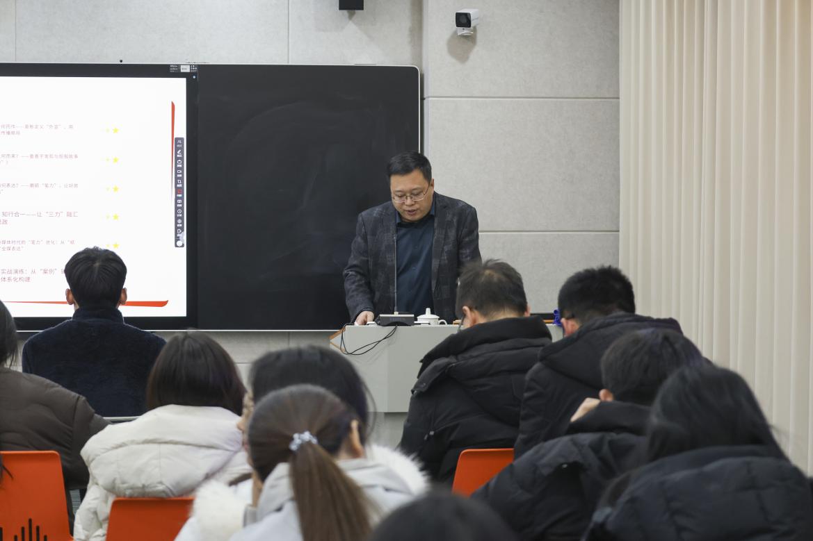 最后,河南教育新闻中心常务副主任杨晓谜以《高校融媒体工作者的核心痛点及解决方案》为题,从五大核心痛点、五个解决方案、十大运营实操问题、五种核心工作能力、三招热点应对方法、一个特色人设构想及六种舆论引导禁忌与技巧等维度进行系统讲解,精准剖析融媒体工作者的普遍困境,并针对我校媒体人设打造提出极具实操性的指导意见。
