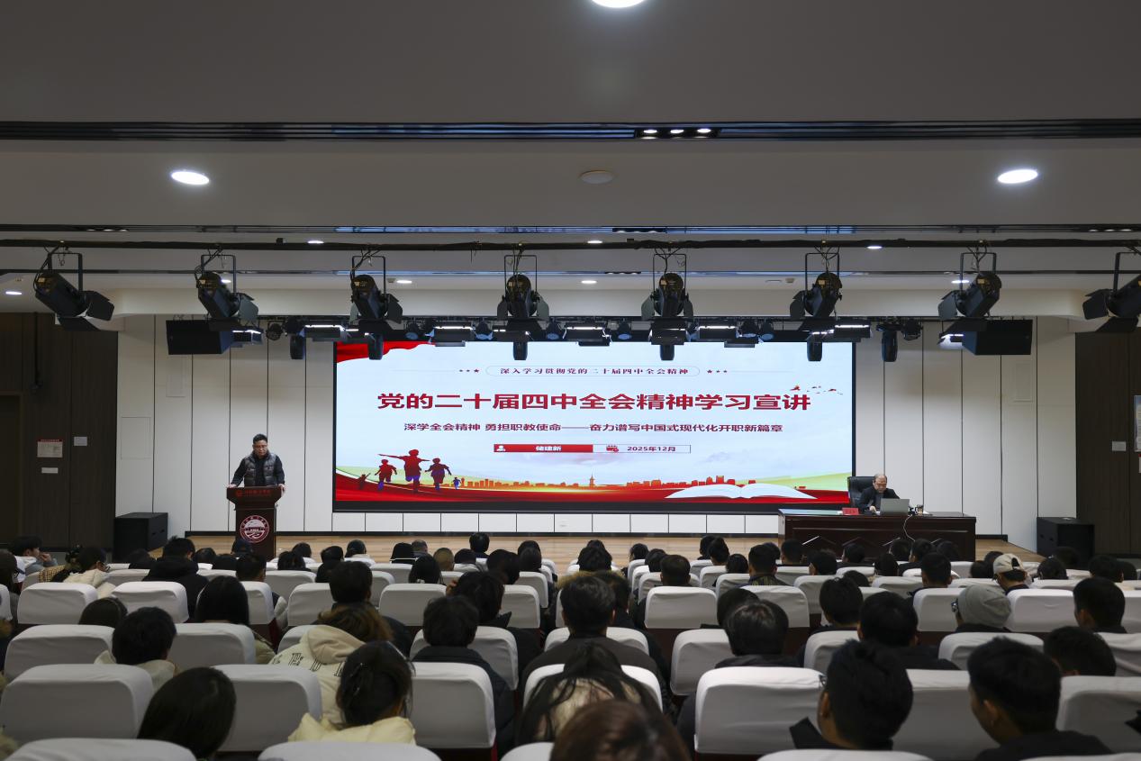 为深入学习领会、全面准确把握党的二十届四中全会精神的丰富内涵与核心要义,凝聚思想共识和全校奋进力量,12月12日下午,校党委书记储建新在毕昇楼报告厅为广大师生作党的二十届四中全会精神专题宣讲。各党总支书记、副书记、团总支书记、组织员、宣传员以及入党、入团积极分子代表300余人齐聚现场,共同聆听学习。活动由校党委组织(统战)部部长高云龙主持。