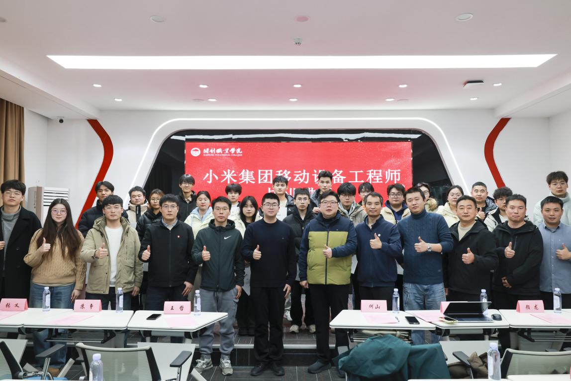 12月14日下午,小米集团(河南)产教融合基地首批“小米移动设备工程师”培训结业典礼在我校举行。小米集团技术委员会项目经理何山一行及我校校企合作中心主任王哲出席仪式,来自池州学院、广西科技师范学院、河南技师学院、南京理工大学泰州科技学院、济源职业技术学院等全国多所高校及我校学子参加。