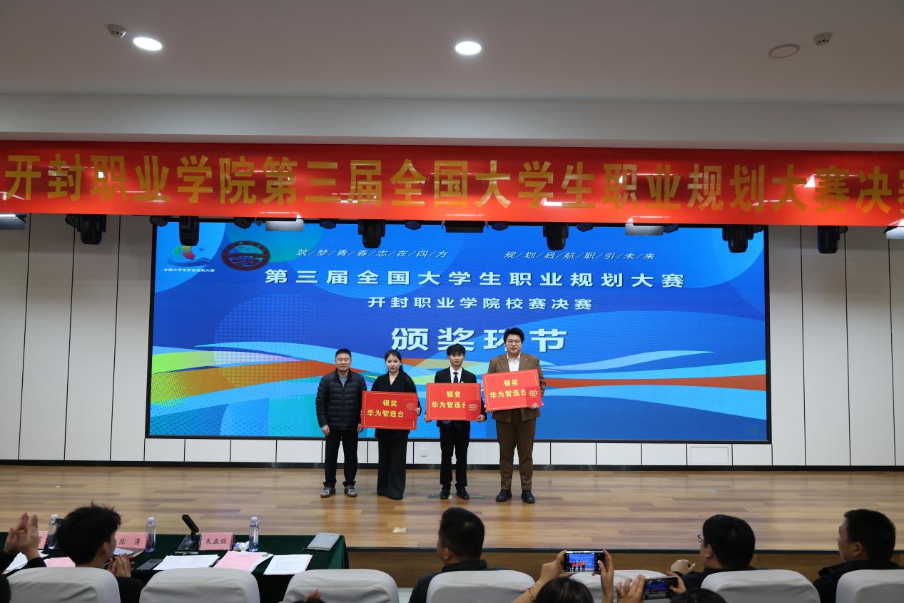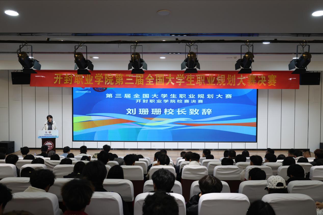 12月16日,第三届全国大学生职业规划大赛校赛决赛在我校毕昇楼报告厅成功举办。本次大赛以“筑梦青春志在四方,规划启航职引未来”为主题,旨在打造强化生涯教育的大课堂、促进人才供需对接的大平台、服务毕业生就业的大市场,为学子成长成才与高质量就业筑牢根基。比赛特邀蓝本电商创始人徐萌,河南玄妙智能科技有限公司创始人陈涛,阿里巴巴大学生创业大赛河南省赛冠军、校友朱亚鹏及就业指导中心教师组成评委团。我校执行校长刘珊珊,党委副书记、副校长马纪岗及相关单位负责人出席活动,近300名师生到场观摩学习。比赛由王格格、赵泽耀同学主持。