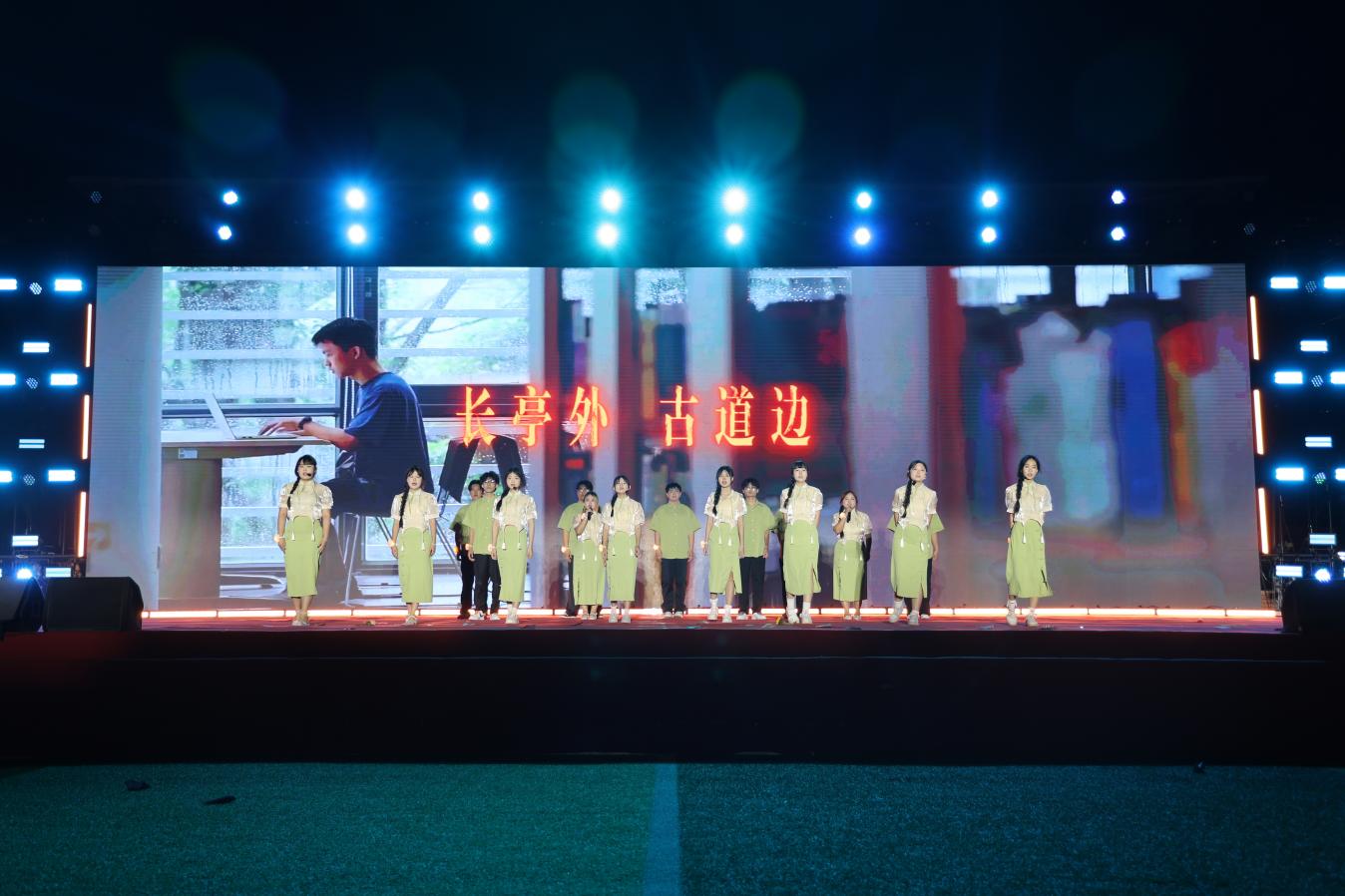 在“相知”篇章中,歌曲《栀子花开》和朗诵《开职认识你》深情回顾了师生之间的点滴情谊;文旅学院演唱的《那些年》以宿舍夜谈、社团活动等日常片段,勾起毕业生们的集体记忆。