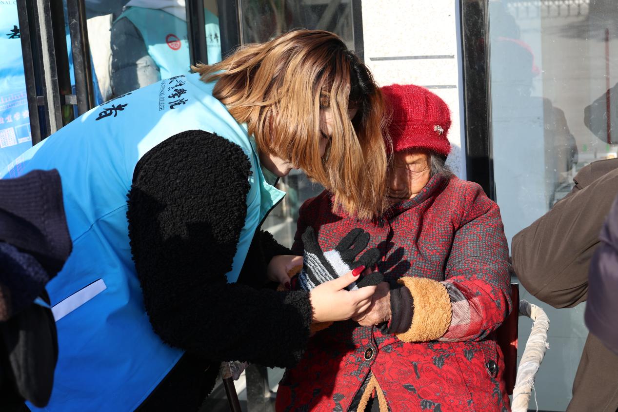 活动当天,志愿者们带着精心准备的生活用品以及自编自导的文艺节。一到三合养老院便受到了院长和老人们的热烈欢迎。志愿者们迅速分工,一部分人主动给老人分发帽子手套等生活用品;另一部分志愿者则围在老人们身边,耐心地陪他们聊天谈心,倾听老人们讲述过去的故事,关切地询问他们的身体状况和生活需求,用真诚的话语为老人们送上温暖的问候。