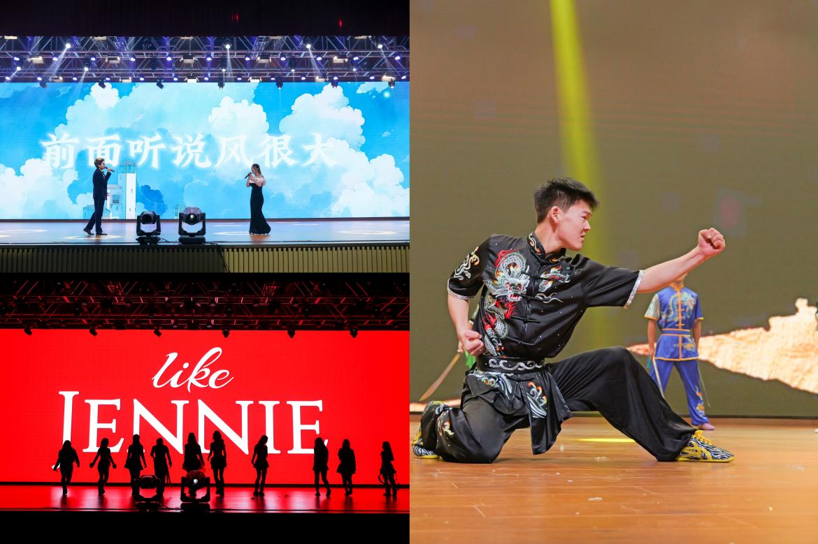 整场晚会以“筑梦·步履生花”“融梦·潮涌星河”“圆梦·风华正茂”三个篇章串联,涵盖歌舞、走秀、乐队演奏等多种形式,将宋韵文化与青年学子的青春活力深度融合。在场师生在《飞云之下》的温柔旋律中守住心中灯塔、奔赴前路繁花。《跃动新元》的刚劲舞姿展现了武道与健美的碰撞,《Like Jennie》以动感节奏诠释了青年的时尚态度;《新团队》用动感舞步展现青春热血与团队凝聚力,《民族霓裳》走秀用绚丽服饰铺展民族文化底蕴,《青春四重奏》以多元曲风唱响青春百态,五弦乐队演绎的《不再犹豫》则以现场演奏的鲜活力量点燃全场热情;《罗马假日》的浪漫舞步、《我相信》的铿锵歌声,共同谱写了圆梦时刻的青春华章,充分展现了开职学子的多才多艺与团结奋进的精神风貌。