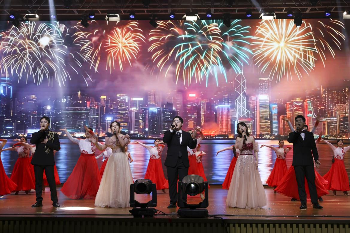 整场晚会以“筑梦·步履生花”“融梦·潮涌星河”“圆梦·风华正茂”三个篇章串联,涵盖歌舞、走秀、乐队演奏等多种形式,将宋韵文化与青年学子的青春活力深度融合。在场师生在《飞云之下》的温柔旋律中守住心中灯塔、奔赴前路繁花。《跃动新元》的刚劲舞姿展现了武道与健美的碰撞,《Like Jennie》以动感节奏诠释了青年的时尚态度;《新团队》用动感舞步展现青春热血与团队凝聚力,《民族霓裳》走秀用绚丽服饰铺展民族文化底蕴,《青春四重奏》以多元曲风唱响青春百态,五弦乐队演绎的《不再犹豫》则以现场演奏的鲜活力量点燃全场热情;《罗马假日》的浪漫舞步、《我相信》的铿锵歌声,共同谱写了圆梦时刻的青春华章,充分展现了开职学子的多才多艺与团结奋进的精神风貌。