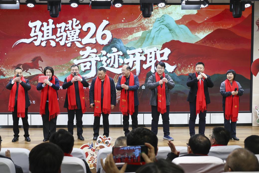 瑞雪迎新春,同心启新程。1月20日上午,我校“骐骥26·奇迹开职”2026年新春团拜会在毕昇楼报告厅温情上演。董事长郑铁军、校长徐仲昆、校党委书记储建新等全体校领导及特邀嘉宾与全体教职工欢聚一堂,凝聚奋进之力,共迎新春到来。