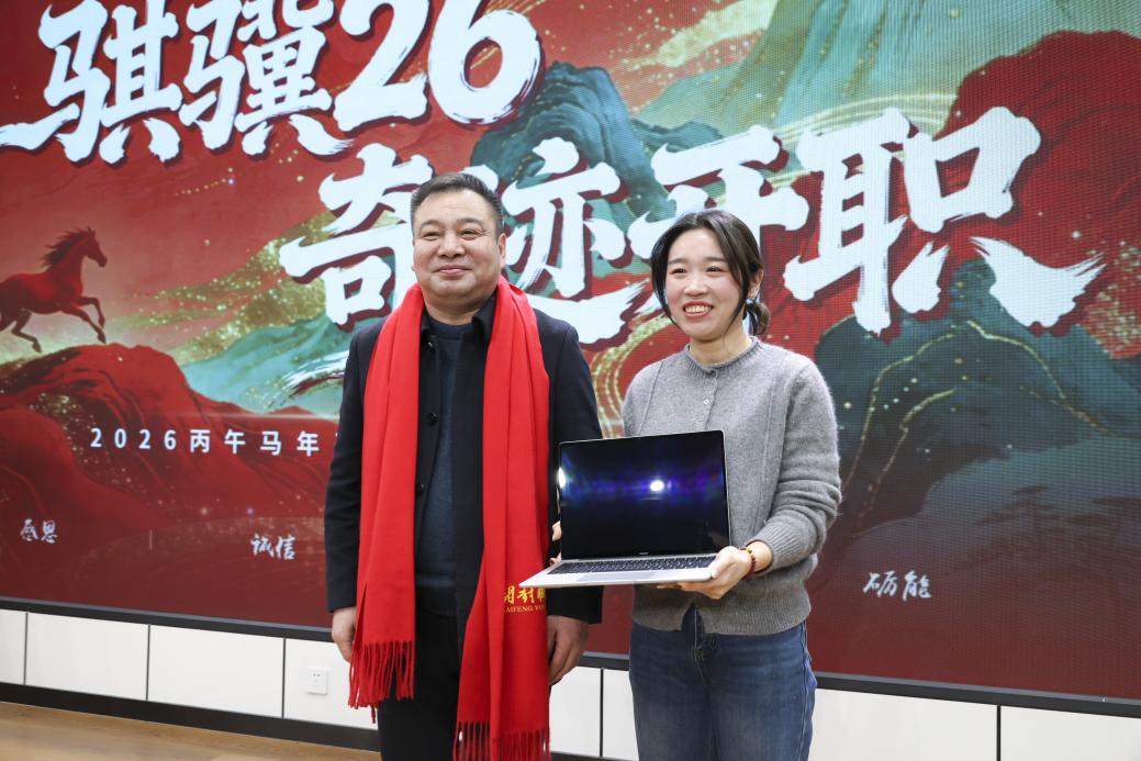 抽奖环节贯穿始终,成为团拜会的一大亮点。电煮锅、加湿器、行李箱、冰箱、电动车以及笔记本电脑等共计400余份丰厚奖品相继送出,阵阵欢呼声与掌声交织,将现场氛围一次次推向高潮。