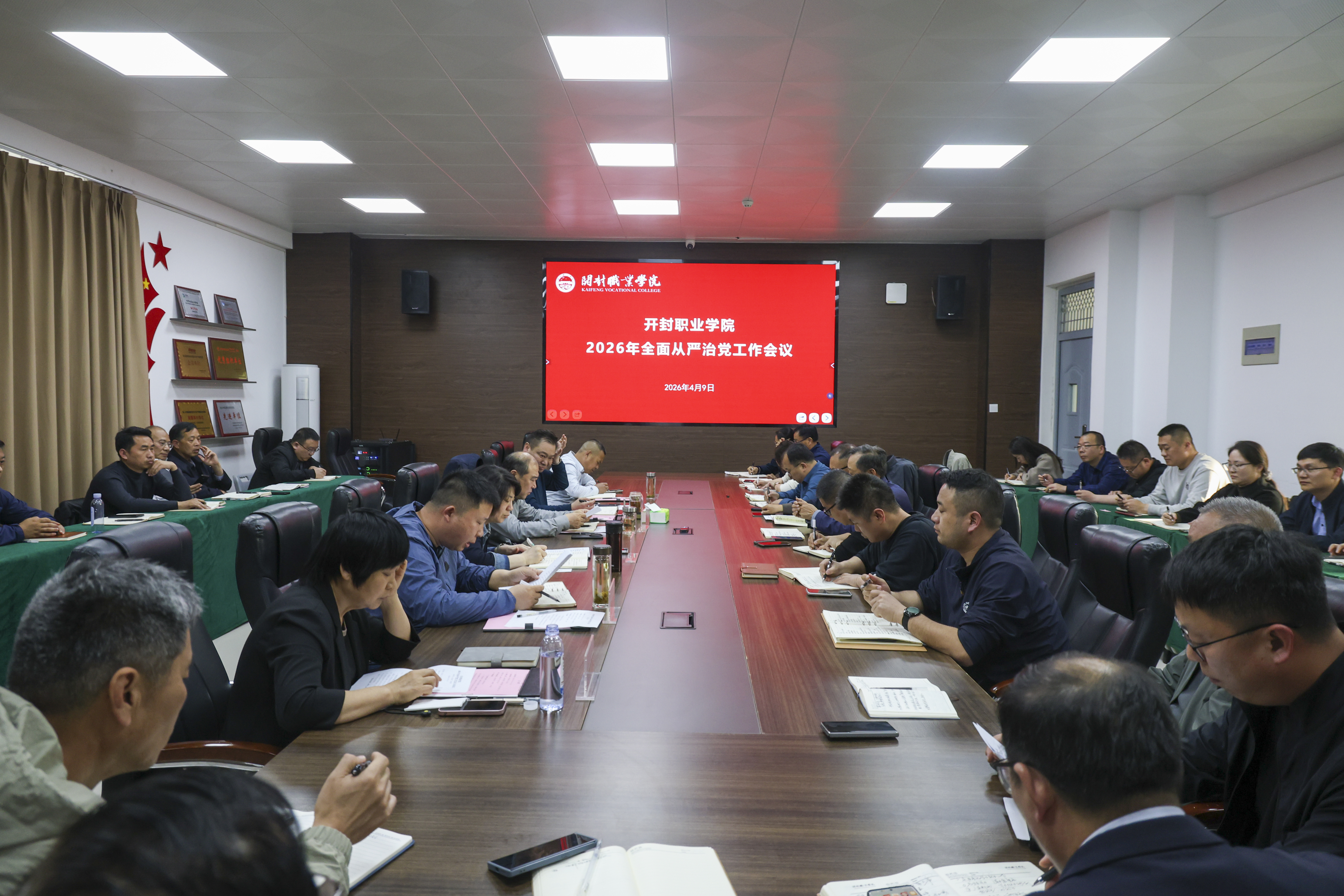 4月9日下午,我校在毕昇楼311会议室召开2026年全面从严治党工作会议。全体校领导、校党委委员、校纪委委员、中层领导干部、科级干部参加会议。会议由校党委副书记、副校长马纪岗主持。