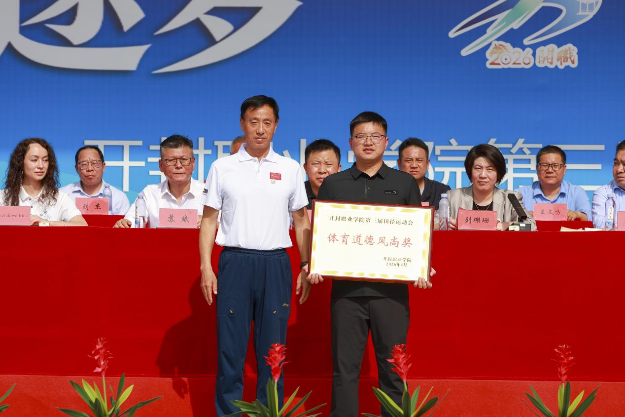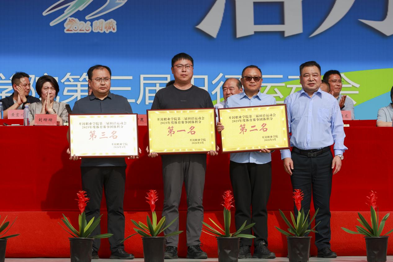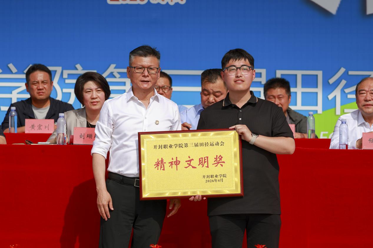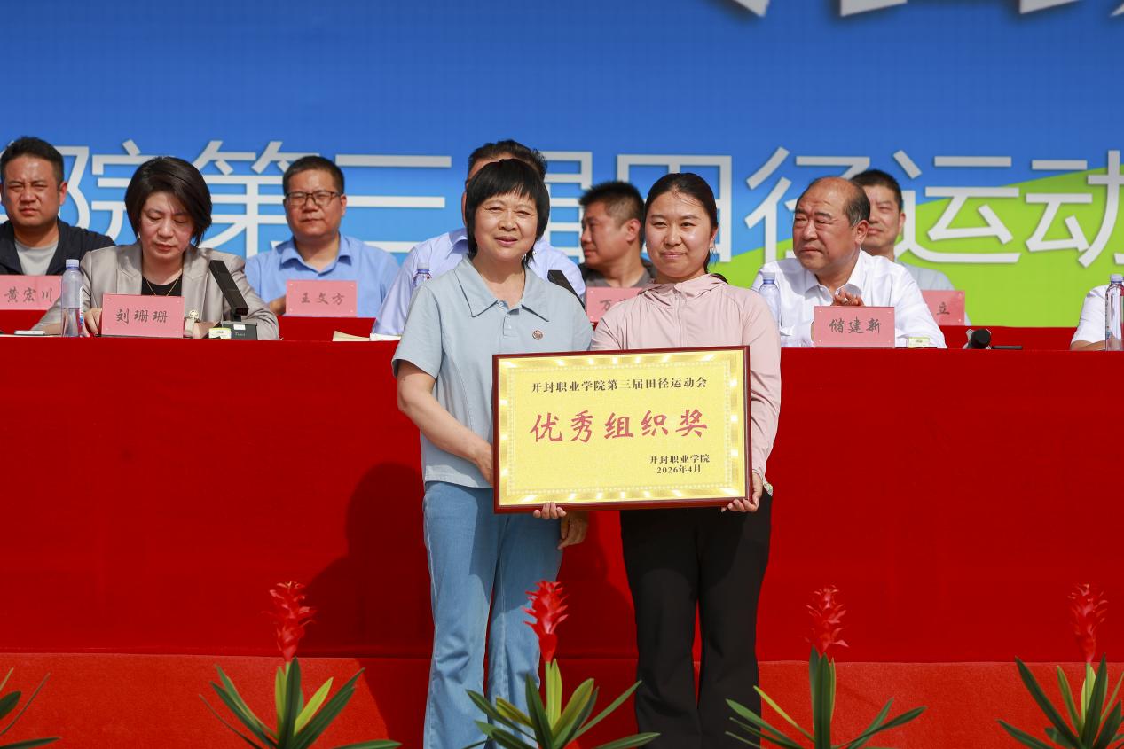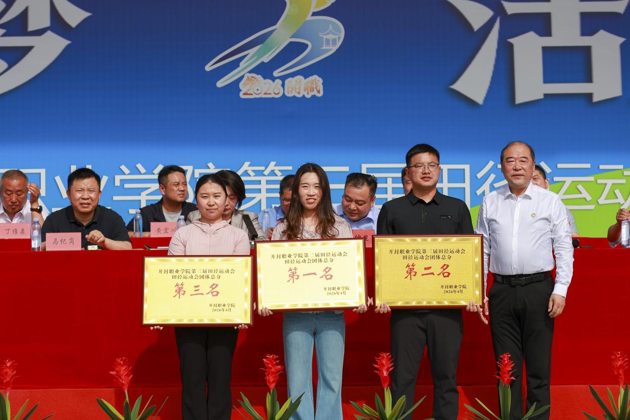 4月17日下午,随着“30人31足”追逐跑项目将运动场气氛推向最后的高潮,开封职业学院第三届田径运动会在南校区运动场圆满落下帷幕。校长徐仲昆、校党委书记储建新等全体在校校领导出席闭幕式并颁奖,各部门、各单位负责人和全体参赛运动员以及师生代表参加闭幕式。闭幕式由执行校长刘珊珊主持。