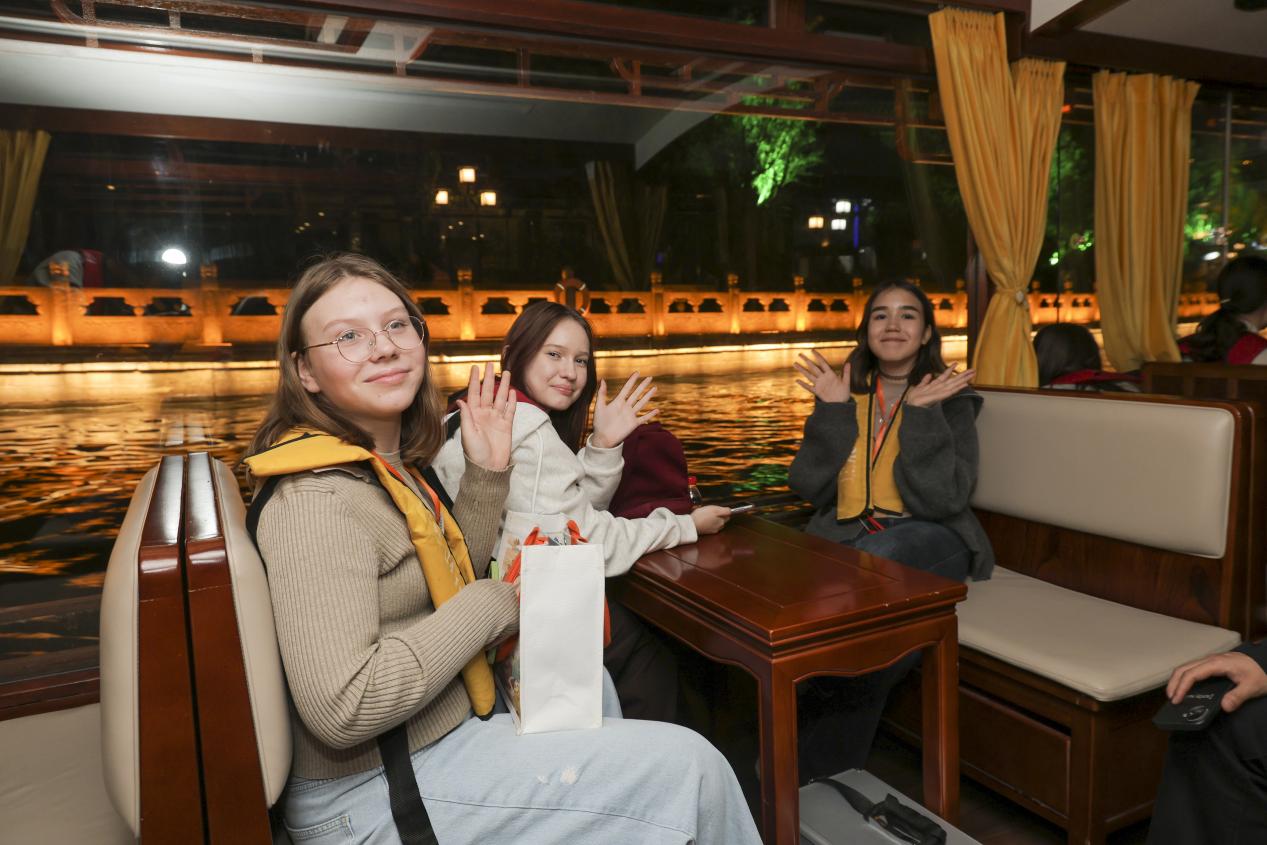 文化交流不仅在课堂,更要走进生活与山水间。此次研学恰逢学校举办第三届田径运动会,俄罗斯学子们身着亲手绣制的汴绣T恤,组成特色方阵走进运动场,还参与了移花接木、排球等一系列趣味运动项目,并在傍晚的校园草坪音乐节中放声歌唱。他们走出校园,在万岁山武侠城中感受中国武侠文化的独特魅力;走进中国翰园和开封市博物馆,在历史的长河中追溯华夏文明的发展脉络;乘船夜游开封、漫步市区、走进商圈,深入体验城市生活的烟火气。