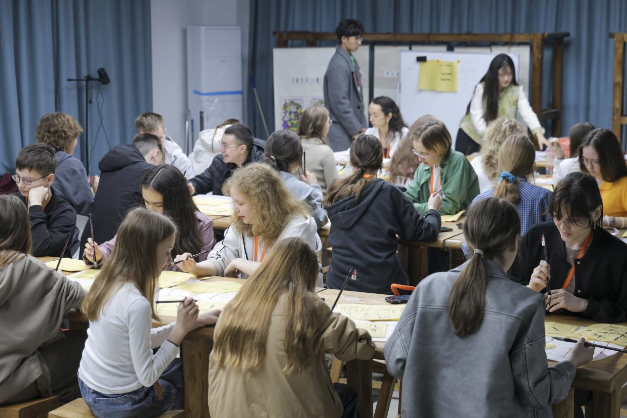 研学期间,俄罗斯学子深度体验了中华优秀传统文化。他们在书法课堂上领略汉字结构之美,在汴绣技艺、北宋官瓷、朱仙镇木版年画等非遗体验中触摸千年前的宋韵风华,在中医推拿、手工泥塑等传统技艺项目里感受中原文化特色。